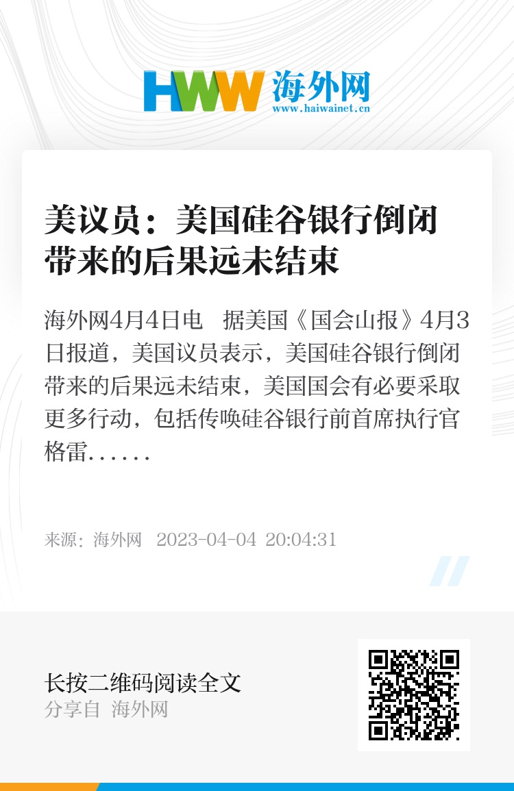 海外网4月4日电 据美国《国会山报》4月3日报道,美国议员表示,美国硅谷银行倒闭带来的后果远未结束,美国国会有必要采取更多行动,包括传唤硅谷银行前首席执行官格雷格·贝克尔。