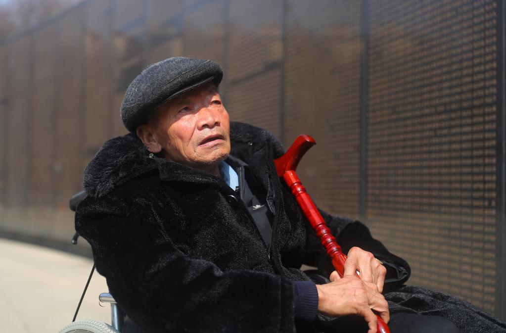 陈寿玉推着轮椅上76岁的父亲陈六街,沿着沈阳抗美援朝烈士陵园内的环形烈士英名墙一点点寻找。清明节前夕,父子俩从贵州省铜仁市沿河县的老家跋涉千里来到沈阳,只为找寻烈士英名墙上“陈福平”三个字,看一眼那阔别已久的亲人。