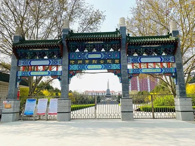 沧州市烈士陵园始建于1958年,为纪念在解放沧州战斗中牺牲的烈士而建成。坐落在中心广场上的青沧战役纪念碑,高26.7米,首层四面浮雕,分别记录着华北野战军234纵队由石家庄奔赴清仓战役前线、勇夺军桥、突破城垣的战斗场面,以及战役胜利后各族人民欢庆的画面。沧州市烈士陵园内还设有纪念馆,陈列着介绍青沧战役的展板和历史物件。纪念馆门前,树立着四座人物雕像,分别属于沧州籍的著名烈士马本斋、张隐韬、赵博生和黄骅。