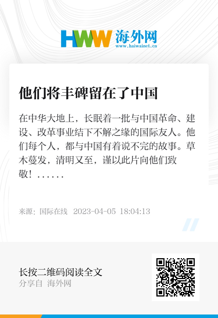 在中华大地上,长眠着一批与中国革命、建设、改革事业结下不解之缘的国际友人。他们每个人,都与中国有着说不完的故事。草木蔓发,清明又至,谨以此片向他们致敬!