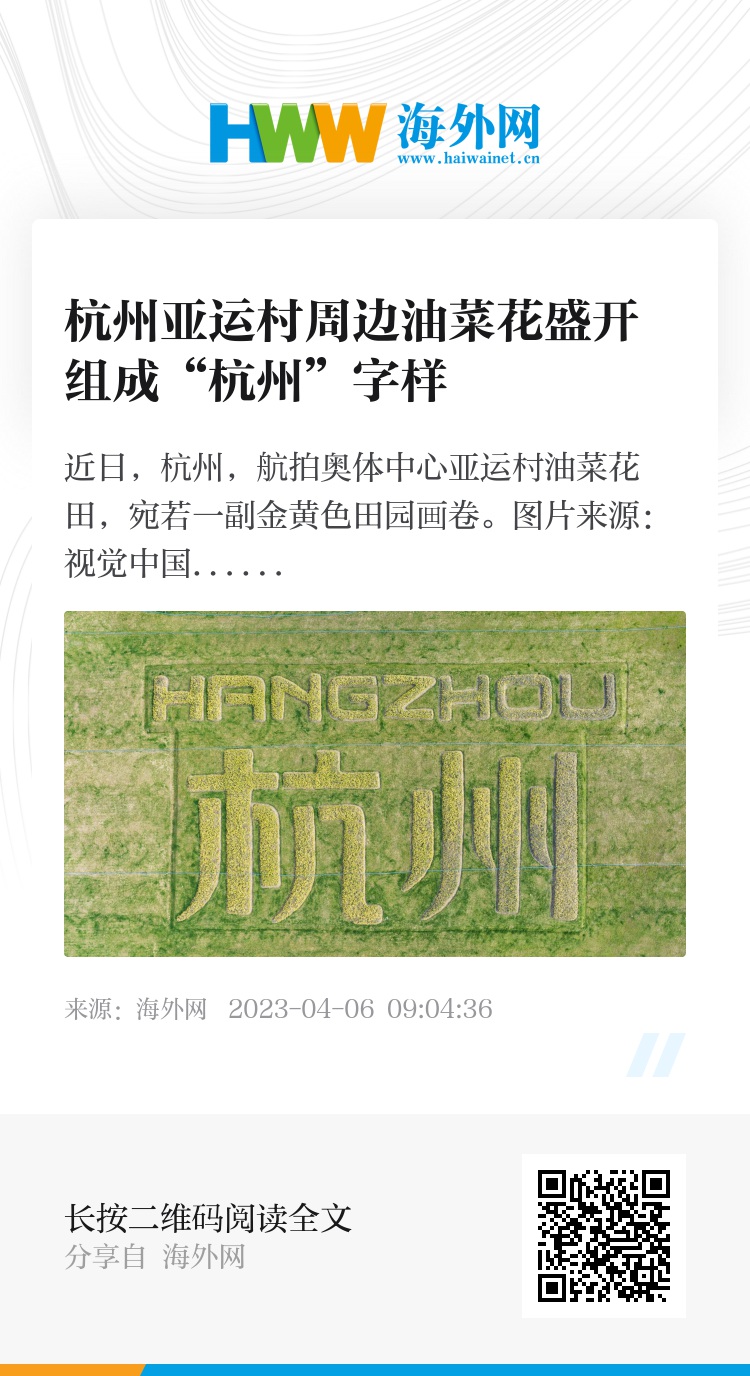 32586948,.杭州亚运村周边油菜花盛开 组成“杭州”字样,.2023-04-06 09:41:36,.204428,.张青津、岳雨田