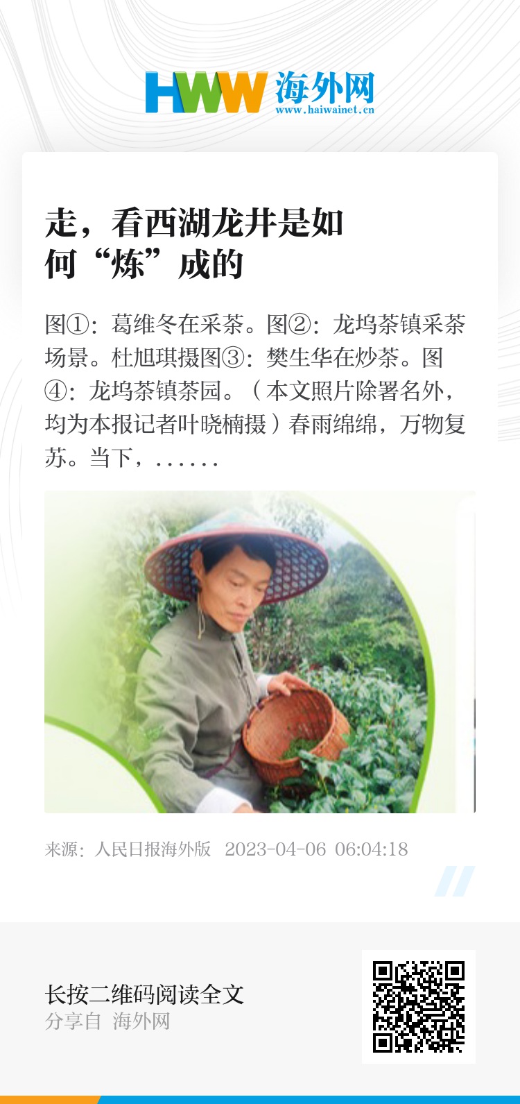 作为中国十大名茶之一,西湖龙井早已闻名于世。一杯绿茶,同青砖绿瓦、烟雨水乡一起,构成了江南水乡的重要意象组合。近日,记者来到有“万担茶乡”之称的浙江省杭州市西湖区龙坞茶镇,实地探访西湖龙井是如何“炼”成的,并采访樊生华、葛维冬等绿茶制作技艺(西湖龙井)省级代表性传承人,发掘非遗传承的生动故事。