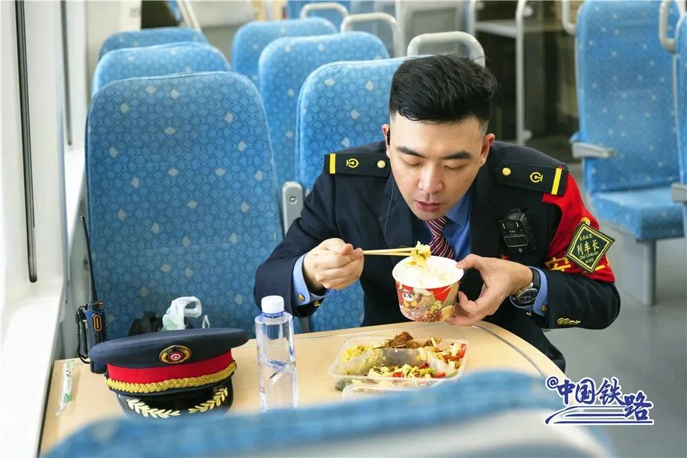 中午,动车终到青城山站后,有20分钟的折返时间。如果巡视完车厢一切顺利,刘晓亮将取回订好的午餐,抓紧时间吃饭。