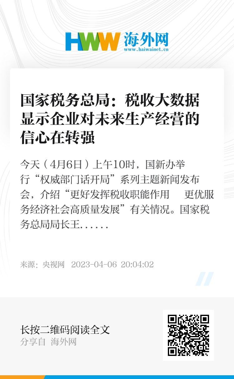 今天(4月6日)上午10时,国新办举行“权威部门话开局”系列主题新闻发布会,介绍“更好发挥税收职能作用 更优服务经济社会高质量发展”有关情况。