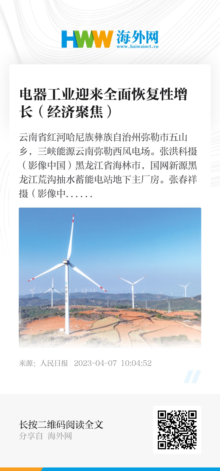 “2023年,煤电、核电、水电等行业在手订单较多,新能源行业还将继续高速增长。”中国电器工业协会有关负责人说。(记者 李心萍 丁怡婷)