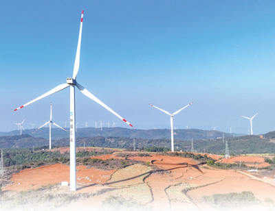 云南省红河哈尼族彝族自治州弥勒市五山乡,三峡能源云南弥勒西风电场。