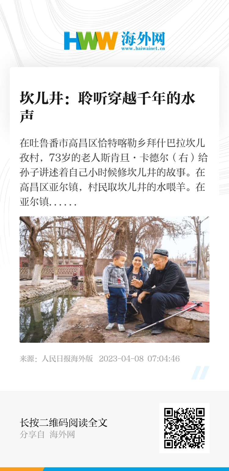 如今,坎儿井不仅仅是灌溉农田、孕育绿洲的生命之井,也已成为当地一张响亮的名片,在促进吐鲁番经济、文化、艺术发展方面发挥着独特作用。