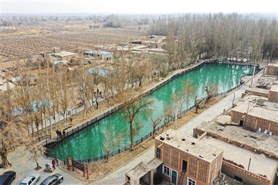 葡萄镇一条坎儿井的出水口白鹭湖犹如一块美玉扮靓乡村。