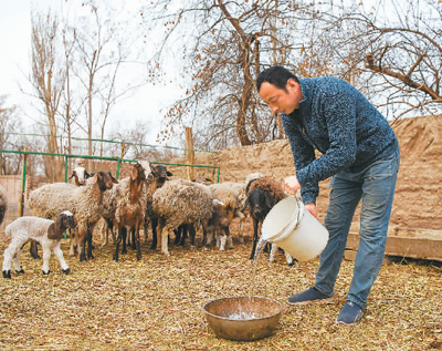 在高昌区亚尔镇,村民取坎儿井的水喂羊。