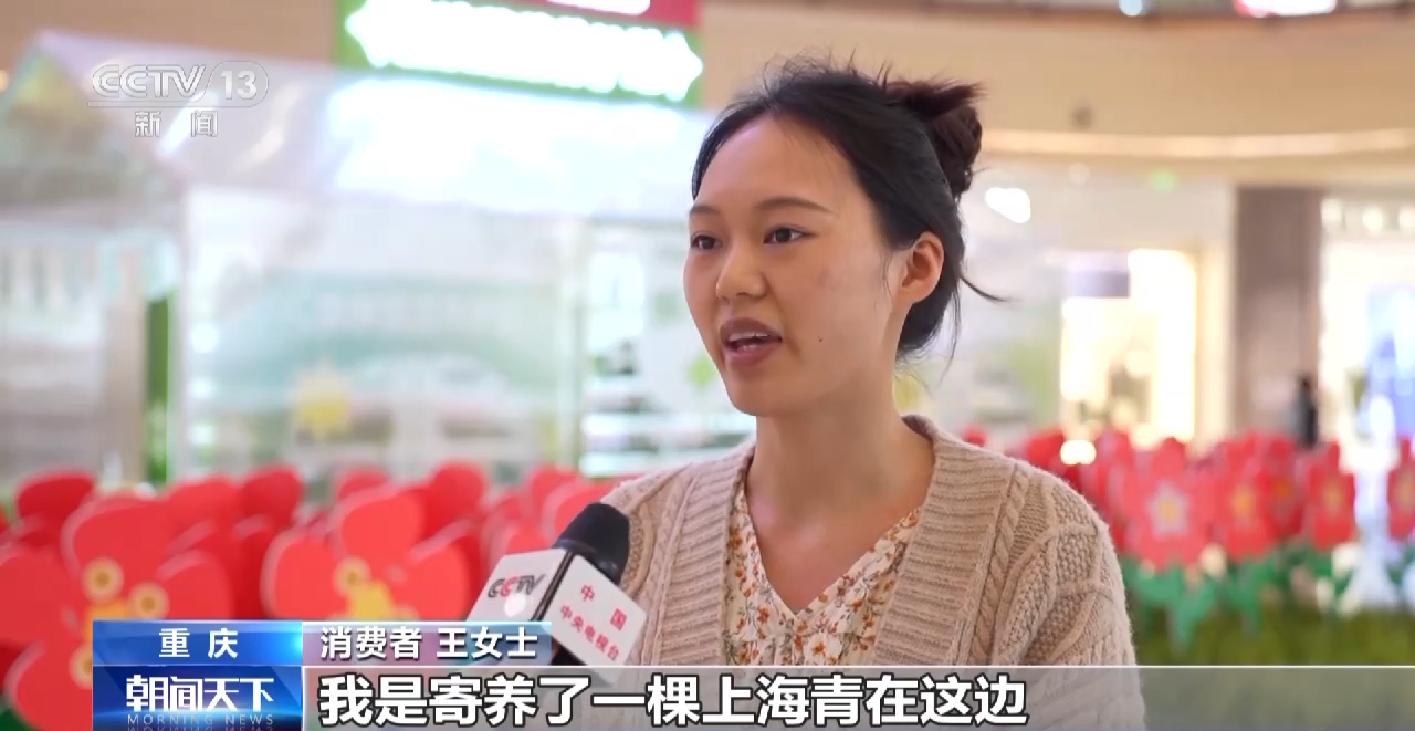 消费者 王女士:我是寄养了一棵上海青在这边,今天他们通知我过来领取,说上海青已经成熟,我平时的话也是会经常过来逛一逛,然后顺便看一看它长得什么样。