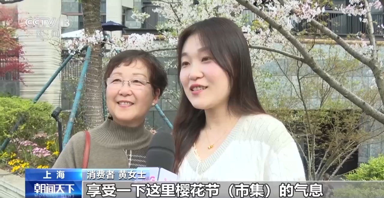 消费者 黄女士:我们来拍个照,享受一下这里樱花节市集的气息,想捕捉一下春天的这种感觉。