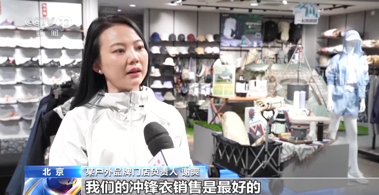 某户外品牌门店负责人 谢爽:我们的冲锋衣销售是最好的,装备这上面,就是我们的速开帐(篷)现在销售是比较好的。现在的消费者偏理性,然后也偏专业,他首先会了解,最后才会是购买。