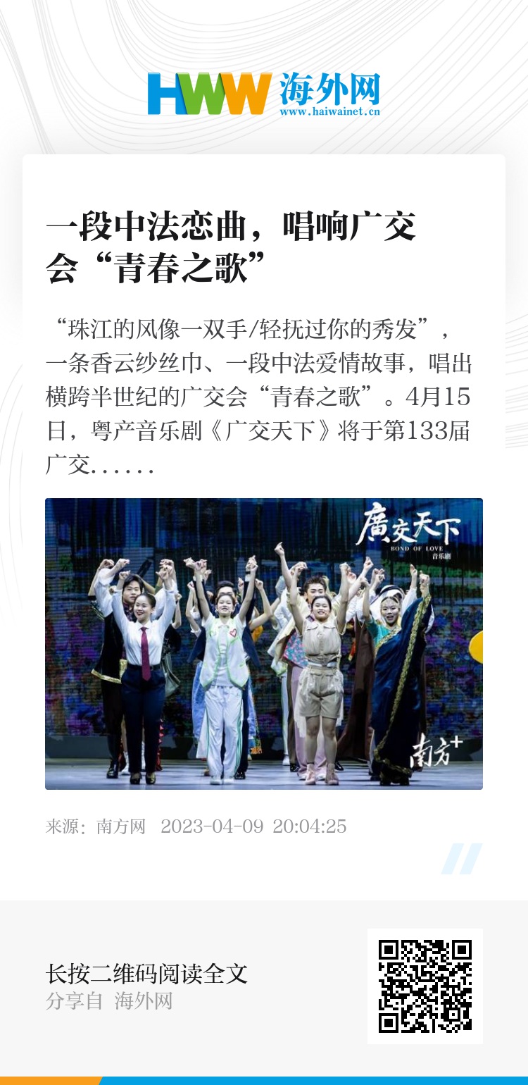 “珠江的风像一双手/轻抚过你的秀发”,一条香云纱丝巾、一段中法爱情故事,唱出横跨半世纪的广交会“青春之歌”。
