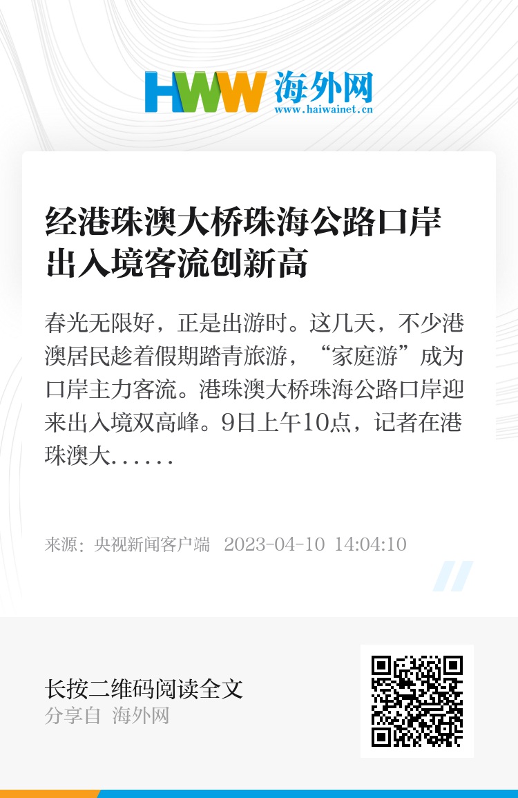 春光无限好,正是出游时。这几天,不少港澳居民趁着假期踏青旅游,“家庭游”成为口岸主力客流。港珠澳大桥珠海公路口岸迎来出入境双高峰。