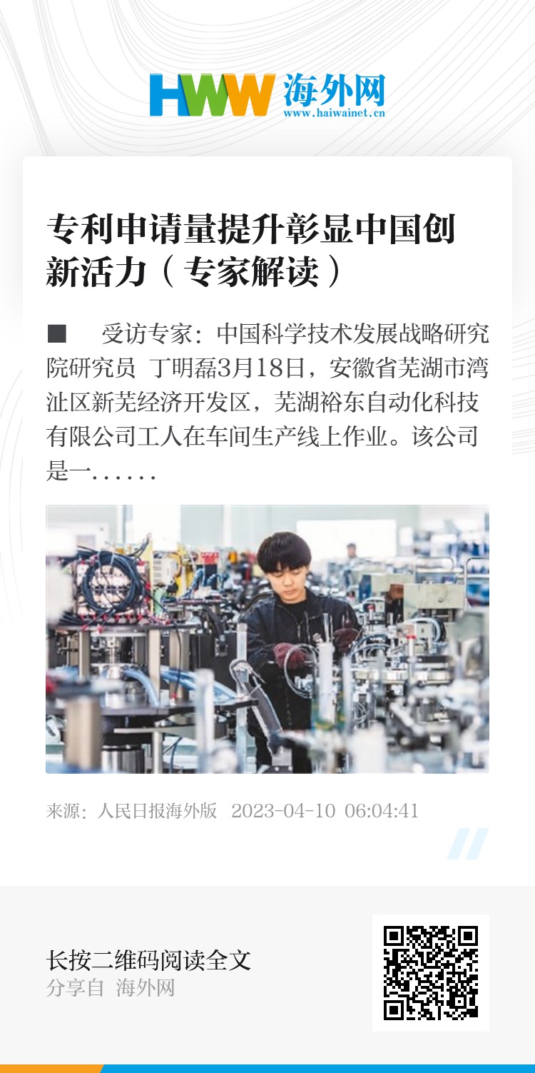 中国专利申请数量屡创新高,对世界知识产权保护意义重大。科技创新是人类社会发展进步的强大动力。中国高度重视科技创新,积极融入全球创新网络,严格保护知识产权,走出了一条有中国特色的知识产权发展道路。中国不仅是国际前沿创新的重要参与者,也是共同解决全球性问题的重要贡献者。中国成为知识产权国际规则的坚定维护者、重要参与者和积极建设者,将知识产权助力脱贫攻坚与联合国2030年可持续发展议程相结合,支持发展中国家知识产权能力建设。未来,中国将以更加开放的姿态继续同各国加强科技创新合作,积极参与全球知识产权治理,为全球知识产权平衡、包容、可持续发展做出更大贡献。