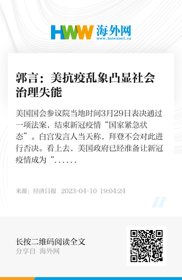 新冠疫情是一场肆虐全球的公共卫生危机,需要包括美国在内的世界各国共同应对。疫情发生以后,美国政府不仅没有承担起应负的国际责任,还大搞政治操弄,极尽甩锅推责之能事,奉行“抗疫利己主义”“疫苗民族主义”,实施“溯源恐怖主义”,煽动国际舆论,严重破坏全球抗疫合作,加剧了疫情蔓延的“火势”。