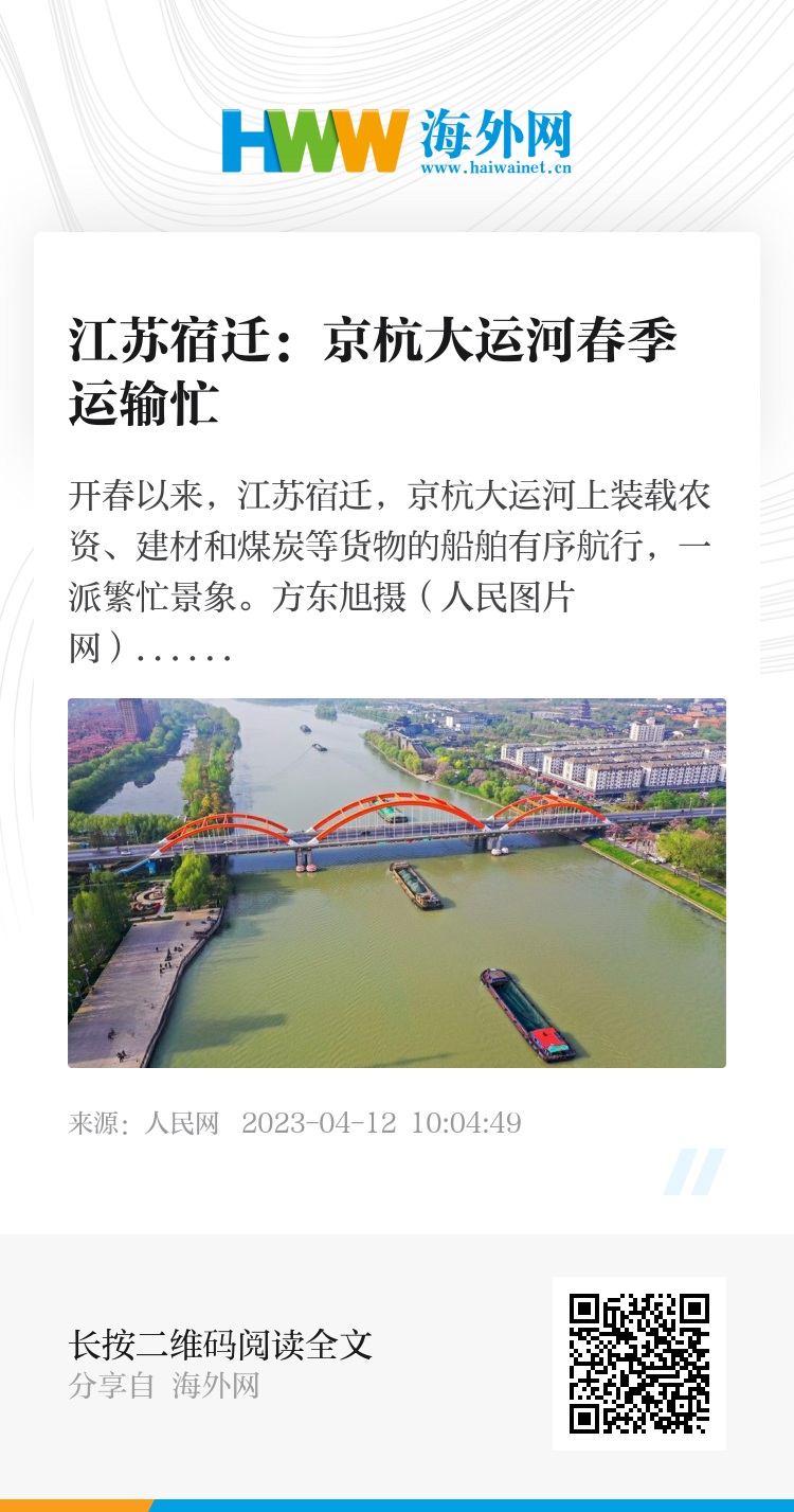 32589924,.江苏宿迁:京杭大运河春季运输忙,.2023-04-12 10:05:49,.204428,.张青津