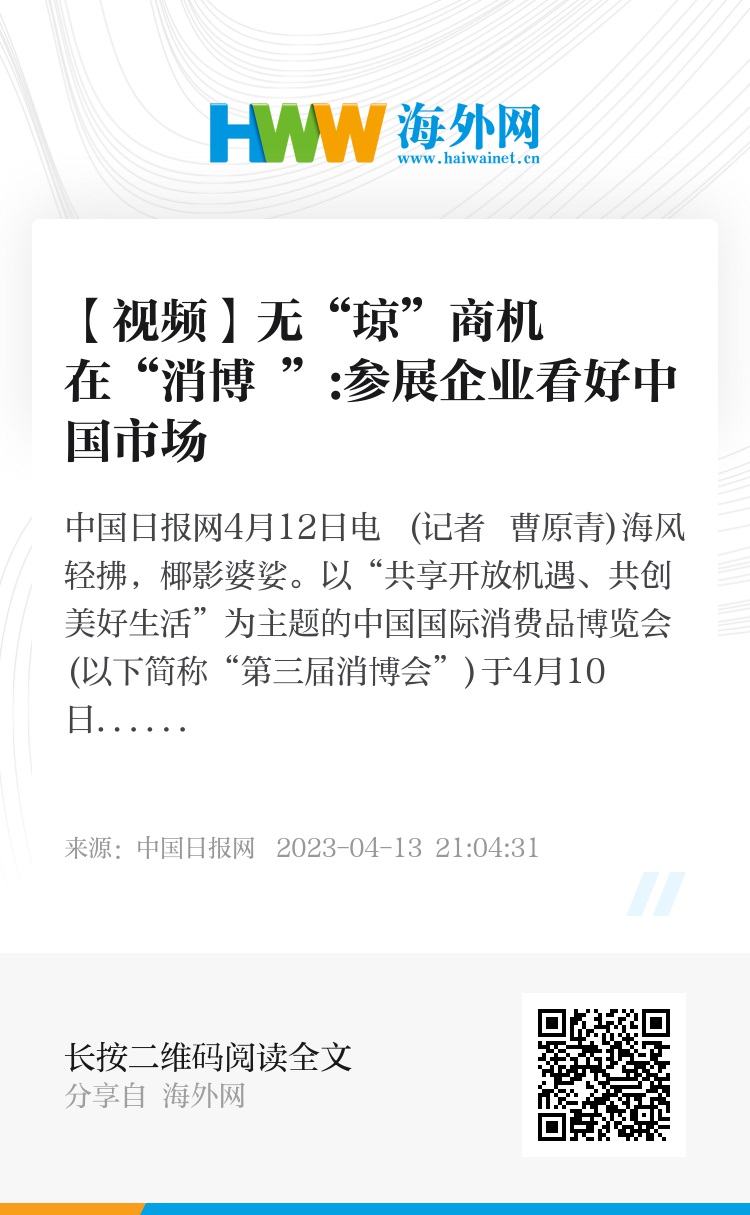 三年来,消博会年年有精彩,年年有新意。在这里,展品变成商品又变成热销品,展商变成了投资商,“头回客”变成“回头客”又变成“常驻客”。参展企业纷纷表示:中国经济具有强大的韧性与活力,他们坚定的看好中国市场与中国经济的发展前景。