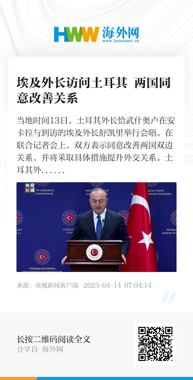 总台记者 陈慧慧:对于土埃关系回暖,土耳其舆论普遍持积极态度。分析人士认为,两国关系实现正常化,将为两国创造共赢局面,并为未来合作打开机遇之门。