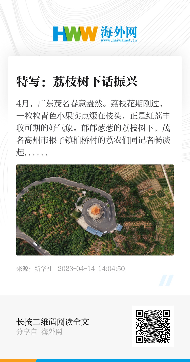 郁郁葱葱的荔枝树下,茂名高州市根子镇柏桥村的荔农们同新华社记者畅谈起“荔枝之乡”发展荔枝龙眼等特色种植业、推进乡村振兴的历程。小小荔枝果,变身“致富果”,让乡亲们的“致富路”越走越宽。