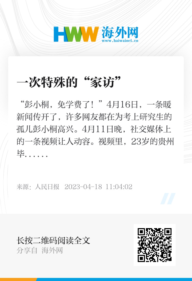 4月11日晚,社交媒体上的一条视频让人动容。视频里,23岁的贵州毕节女孩彭小桐分享自己考研成功的喜讯,但随后却失声痛哭。