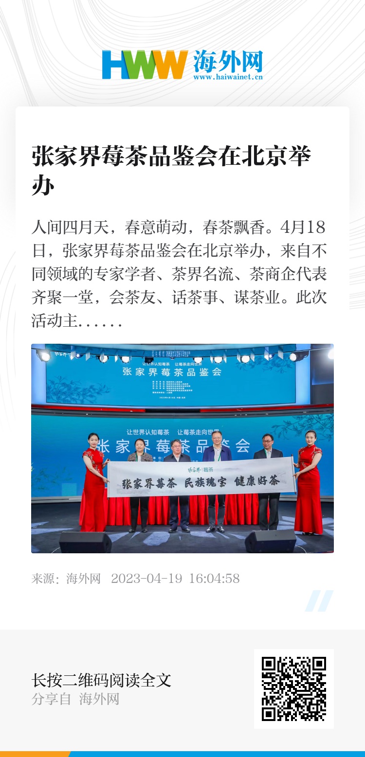 人间四月天,春意萌动,春茶飘香。4月18日,张家界莓茶品鉴会在北京举办,来自不同领域的专家学者、茶界名流、茶商企代表齐聚一堂,会茶友、话茶事、谋茶业。