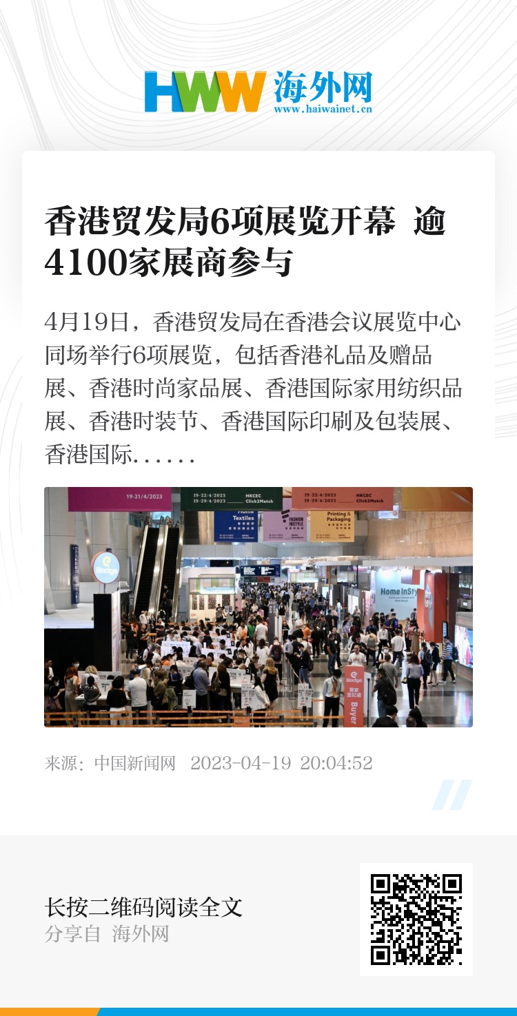 4月19日,香港贸发局在香港会议展览中心同场举行6项展览,包括香港礼品及赠品展、香港时尚家品展、香港国际家用纺织品展、香港时装节、香港国际印刷及包装展、香港国际授权展。展览吸引了来自23个国家及地区逾4100家展商参与。中新社记者 李志华 摄