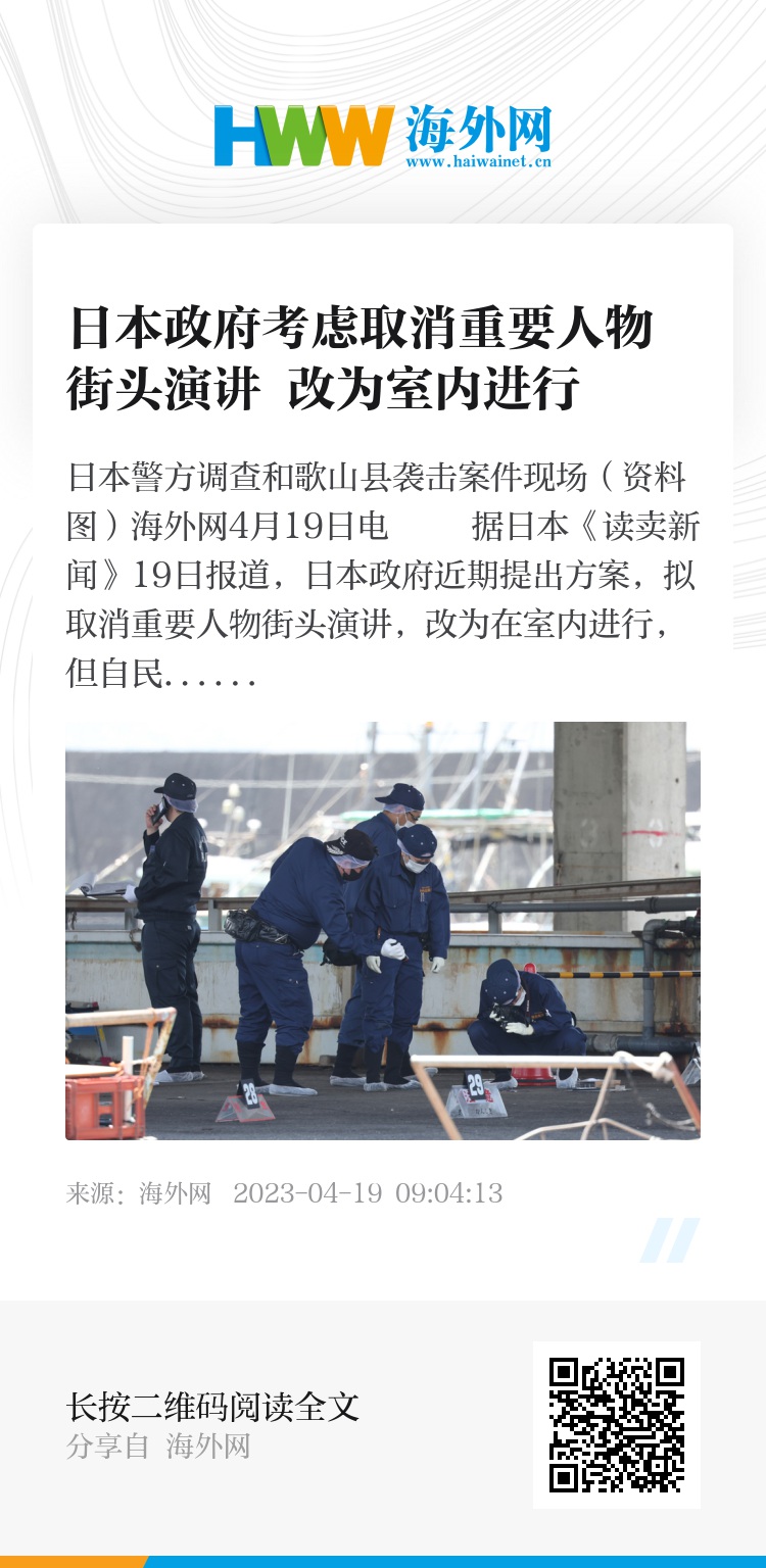 在野党也发声称,在街头向民众发出呼声必不可少,不会屈服于暴力。日本政府拟通过金属探测器加强对听众随身物品的检查工作,并考虑在街头演讲进行时加设防弹墙等。(海外网/王珊宁)