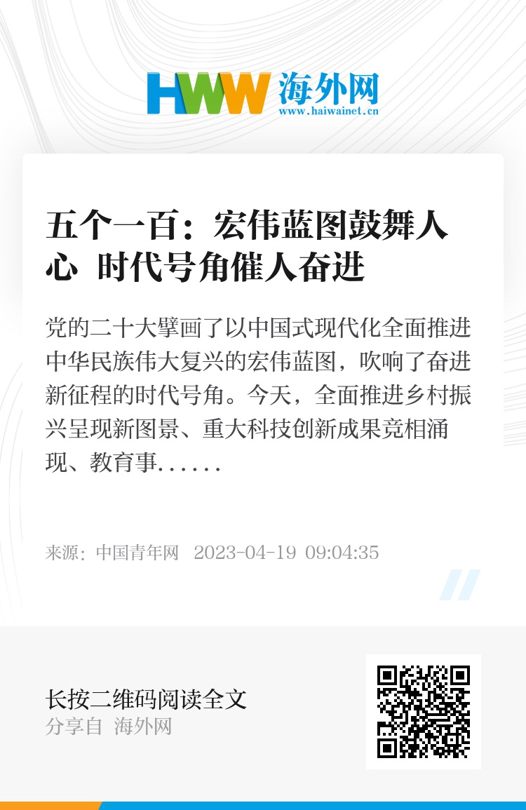 党的二十大擘画了以中国式现代化全面推进中华民族伟大复兴的宏伟蓝图,吹响了奋进新征程的时代号角。今天,全面推进乡村振兴呈现新图景、重大科技创新成果竞相涌现、教育事业发展为民族复兴注入强劲动力、老有所养“中国方案”正稳步践行、人与自然和谐共生的美好画卷徐徐展开……