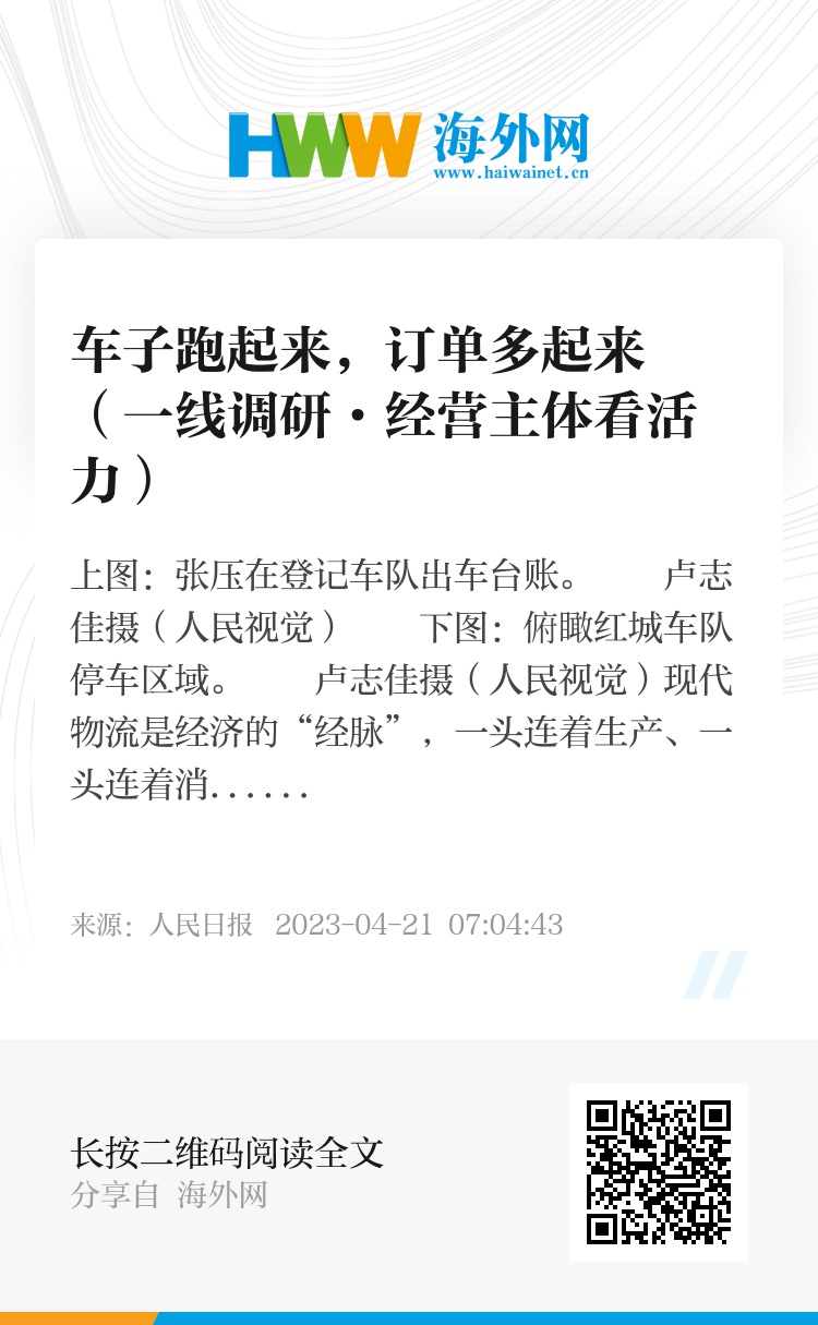在和记者交谈的几个小时里,张压的手机一直没闲着。前些年联系寥寥的老主顾们又活跃起来了,工地的建筑设备、企业的生产物资、商铺的各类货品等,约车电话一个接一个。“有段时间没有感受过忙碌了,目前车队整体订单起码比去年底增长三成。”张压说,车跑起来,人都变精神了。