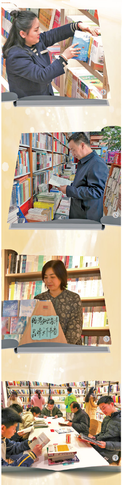 图①:江苏省淮安书房盱眙店主管张慧琳在整理书籍。