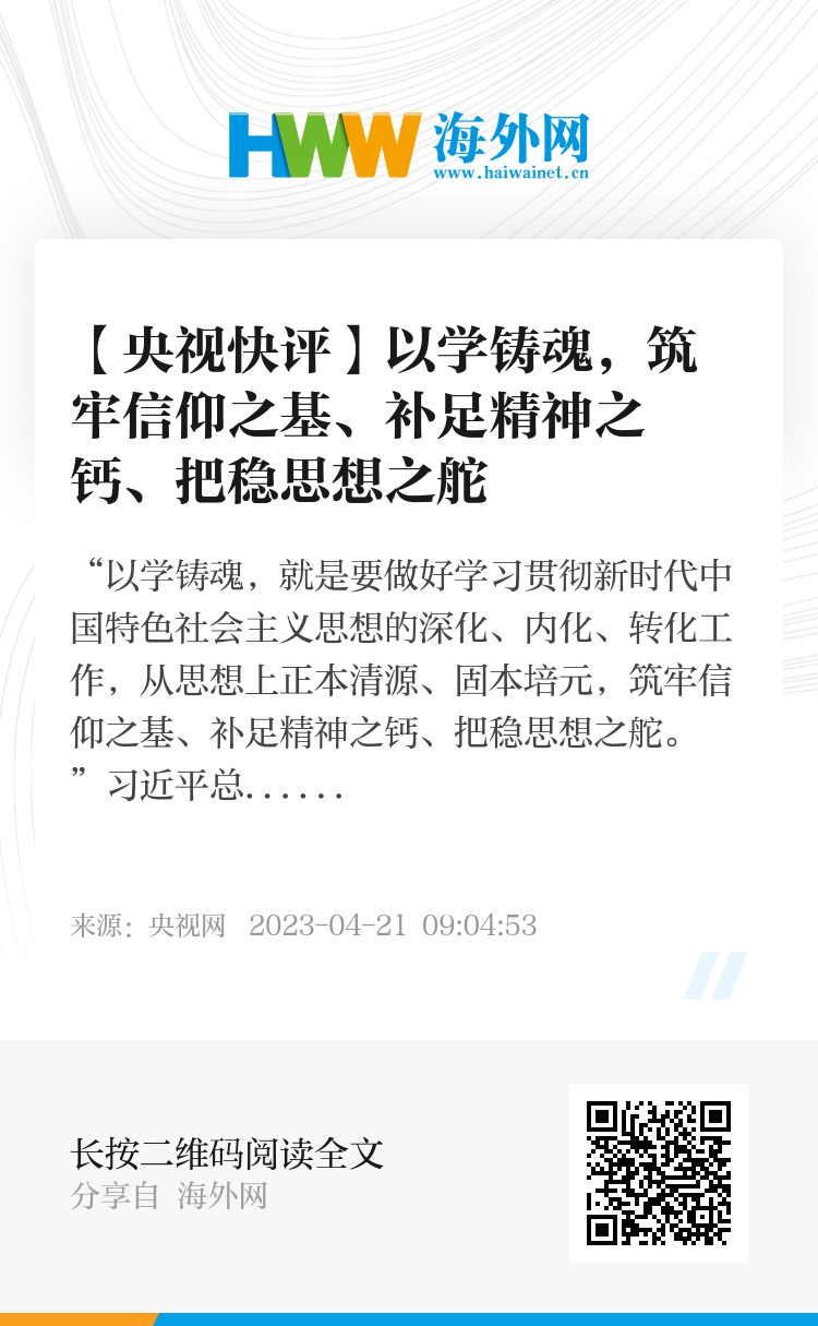 “以学铸魂,就是要做好学习贯彻新时代中国特色社会主义思想的深化、内化、转化工作,从思想上正本清源、固本培元,筑牢信仰之基、补足精神之钙、把稳思想之舵。”习近平总书记近日在广东考察时就“以学铸魂”作出深刻阐释,提出明确要求,为全党扎扎实实开展好主题教育指明了方向。
