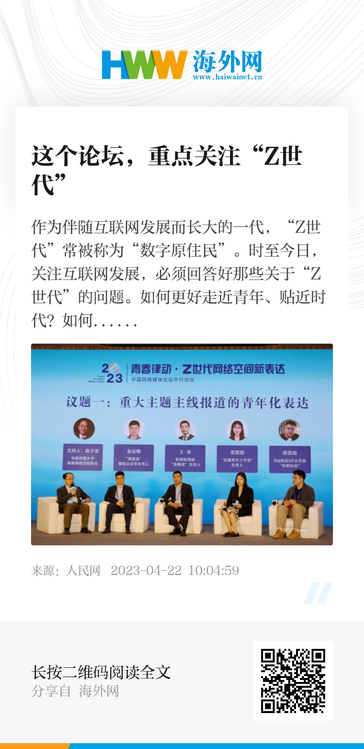 如何更好走近青年、贴近时代?如何打开青年的“话匣子”?4月21日,在南京举行的2023中国网络媒体论坛上,一场聚焦“Z世代”的平行分论坛座无虚席,吸引了广泛关注。