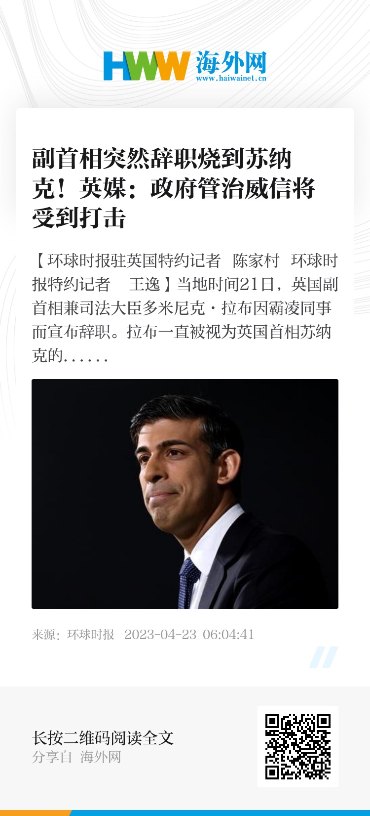 BBC分析称,拉布是过去半年里,苏纳克政府第三位因个人行为问题而辞职的官员,其政府的管治威信将不可避免地受到打击。法新社22日称,在前首相约翰逊丑闻发生后,苏纳克曾承诺建立一个廉洁的政府。拉布辞职不仅有损苏纳克为重振保守党所做的努力,同时也使他非常难堪。这起最新事件对改善公众对苏纳克政府的印象毫无帮助。此外,拉布辞职距离英国举办地方选举仅剩下两周,选前预测苏纳克所领导的保守党将在选举中遭遇挫败。