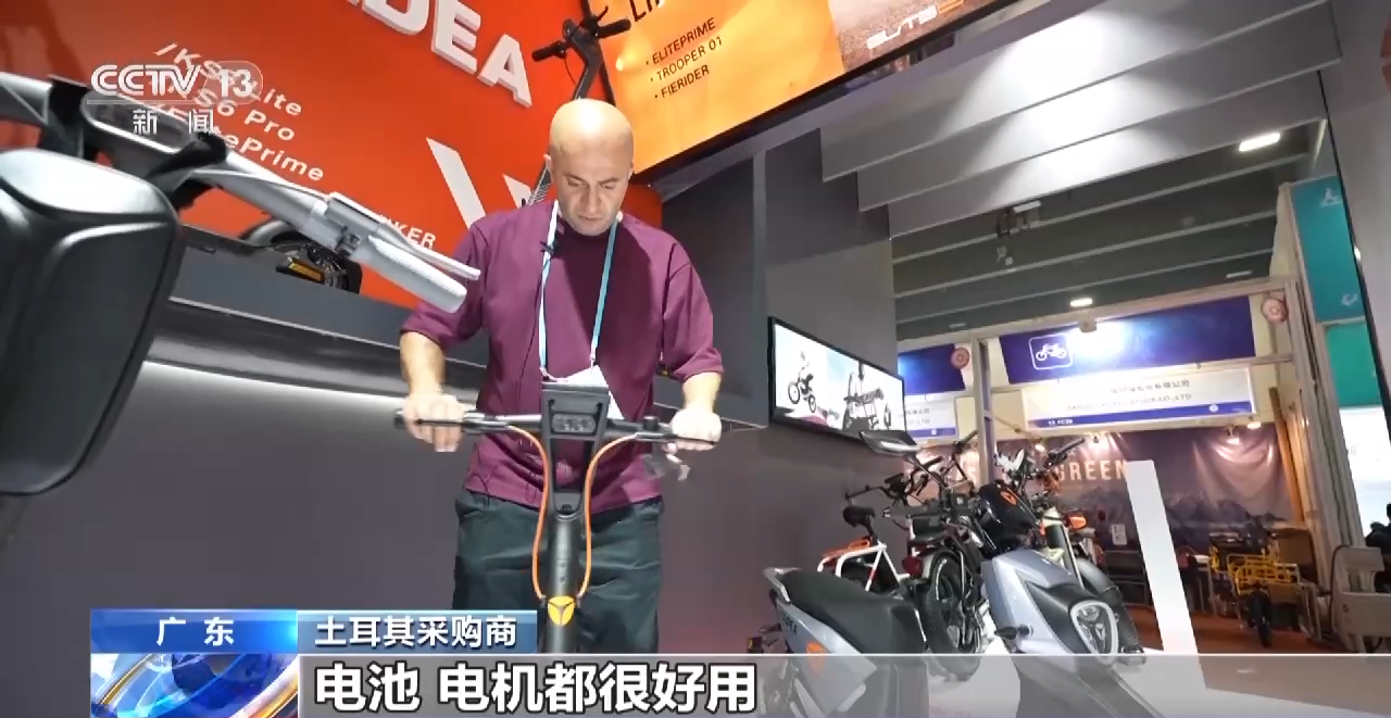 土耳其采购商:我觉得中国的产品质量越来越好。他们做的新产品,比如说电瓶车,比较舒服比较快,质量比较好,电池、电机都很好用。我在中国已经15年了,我自己看到了中国发展非常好。所以我也想这样合作。