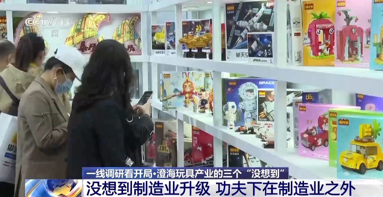除此之外,畅销的玩具品类和过去也有所不同。一家头部玩具企业的成交数据显示,针对低龄儿童的玩具订单量占比从90%下降到65%;主要面向成年消费群体的潮流玩具也就是人们常说的“潮玩”,占比从10%提升到35%。广东森宝文化实业公司商业运营总监蚁银瑶告诉记者,目前针对大人的玩具中有几类最受欢迎,第一类是科技科幻类产品,第二类是从传统文化出发,比如说角楼之类的建筑模型玩具,第三类是时尚潮流类产品,第四类是和艺术、节庆相关的创意类产品。而终端消费市场中毛细血管里的需求,也快速地汇集到上游生产的大动脉中。在澄海当地一家玩具企业的展厅中,记者注意到,标着“14+”也就是14岁以上标签的玩具放在比较显眼的位置。广东汕头市澄海区玩具协会常务副会长陈烽说,0—14岁以及16岁以下的孩童,是一直以来玩具产品主打的存量市场,15岁以上的这一部分,现在成了一个很大的增量市场,将成为玩具产业一个重要的增长点。