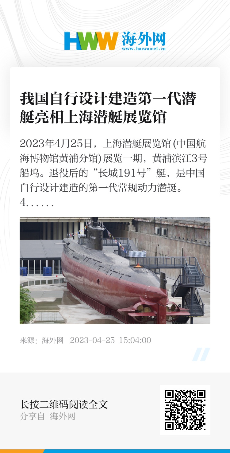 2023年4月25日,上海潜艇展览馆(中国航海博物馆黄浦分馆)展览一期,黄浦滨江3号船坞。退役后的“长城191号”艇,是中国自行设计建造的第一代常规动力潜艇。4月23日,上海潜艇展览馆(中国航海博物馆黄浦分馆)展览一期在黄浦滨江3号船坞开幕。自4月25日起,上海潜艇展览馆展览一期将适时向公众开放参观。图源:视觉中国