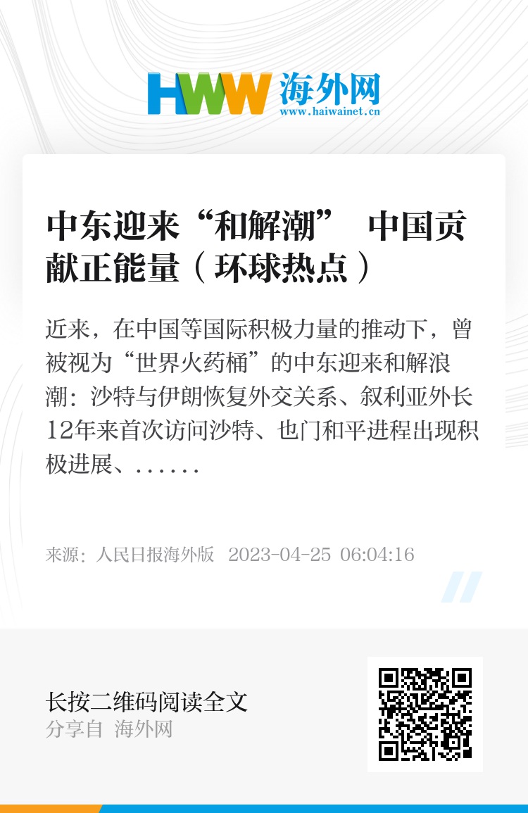 在世界处于百年未有之大变局、人类社会面临前所未有挑战的历史背景下,推动中东迎来“和解潮”是中国倡导全球安全倡议、构建人类命运共同体的精彩实践,为世界各国通过对话协商解决矛盾提供了重要示范。
