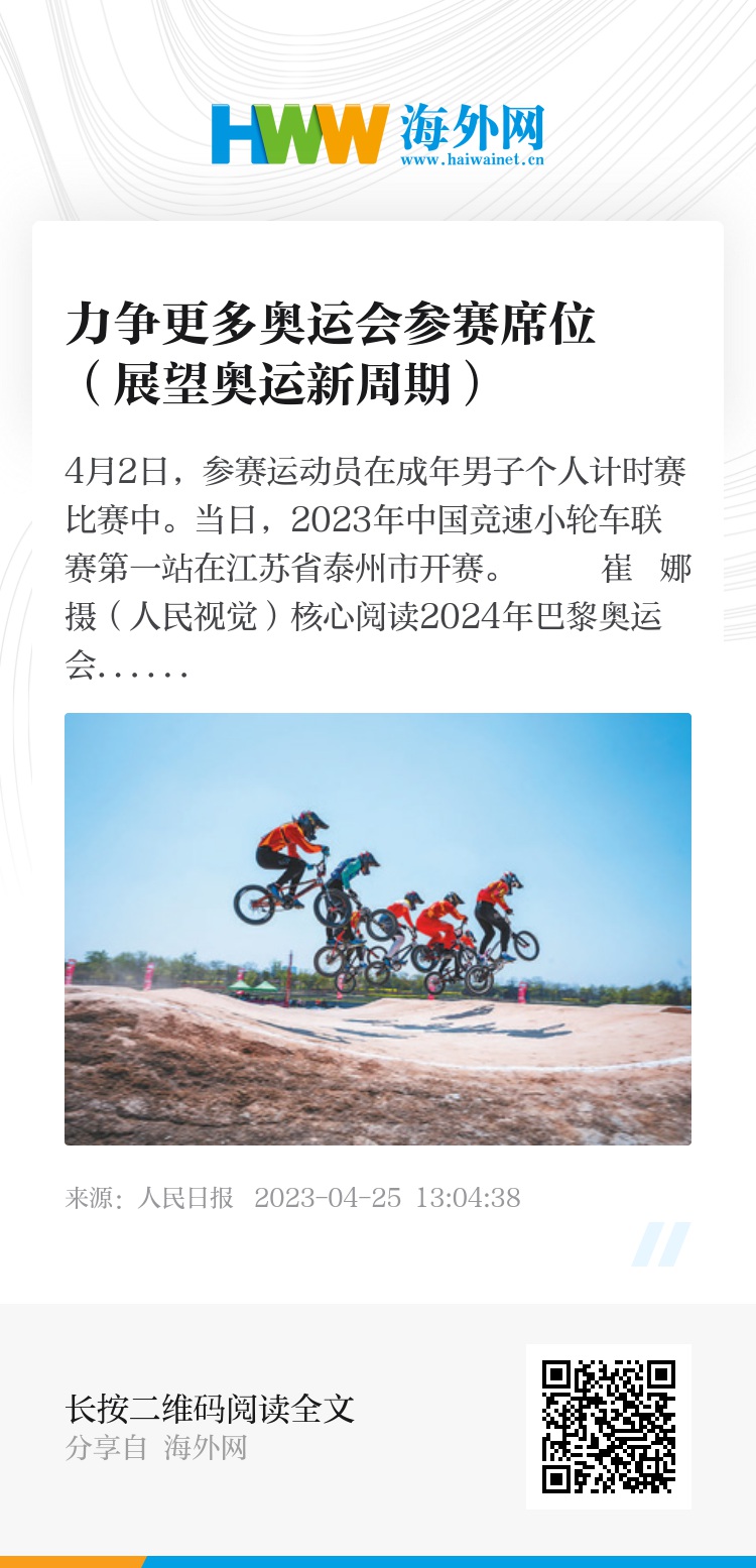 自行车是奥运会金牌大项。2024年巴黎奥运会,将在场地自行车、公路自行车、山地自行车、竞速小轮车和自由式小轮车5个分项上产生22枚金牌。进入2023年,中国自行车项目延续了奥运新周期开启后的良好势头,尤其是在一些过去相对薄弱的项目上,国家队选手取得长足进步。接下来,一系列重要的奥运积分赛将陆续展开,国家自行车队将力争更多奥运会参赛席位。