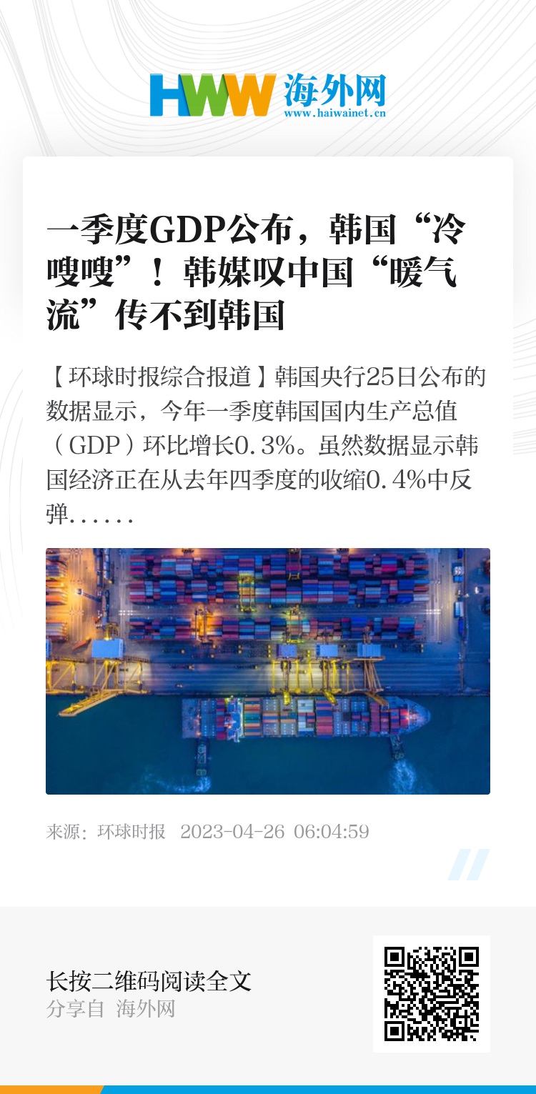 【环球时报综合报道】韩国央行25日公布的数据显示,今年一季度韩国国内生产总值(GDP)环比增长0.3%。虽然数据显示韩国经济正在从去年四季度的收缩0.4%中反弹,但涨幅很低,尤其令韩国经济界感到不安的是出口颓势仍未逆转。韩国国际贸易协会当天公布的数据显示,一季度韩国出口同比下降12.6%,当季出现225亿美元的贸易逆差,其中对中国的出口同比大跌近30%。韩国《亚洲日报》称,受对华出口持续下滑影响,美国时隔近20年取代中国成为韩国最大出口市场。2018年起,美国对华限制政策导致韩国对华出口比重在近5年内下滑7.3个百分点。韩国“Dailian”网站24日报道称,已经有担忧认为,对华贸易减少带来的危机可能更加动摇韩国经济。