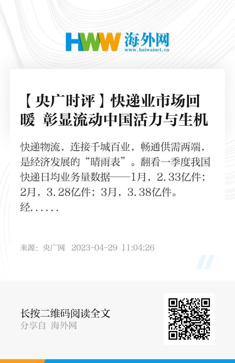 快递业服务质效提升,也正在为推动中国消费回暖注入新动力。眼下,“五一”小长假来临,邮政快递畅通循环作用也将充分得到发挥。但越是在快递业不断发展壮大之际,越是要规范行业自身建设,完善自身服务,为推动中国消费回暖注入持续动力。