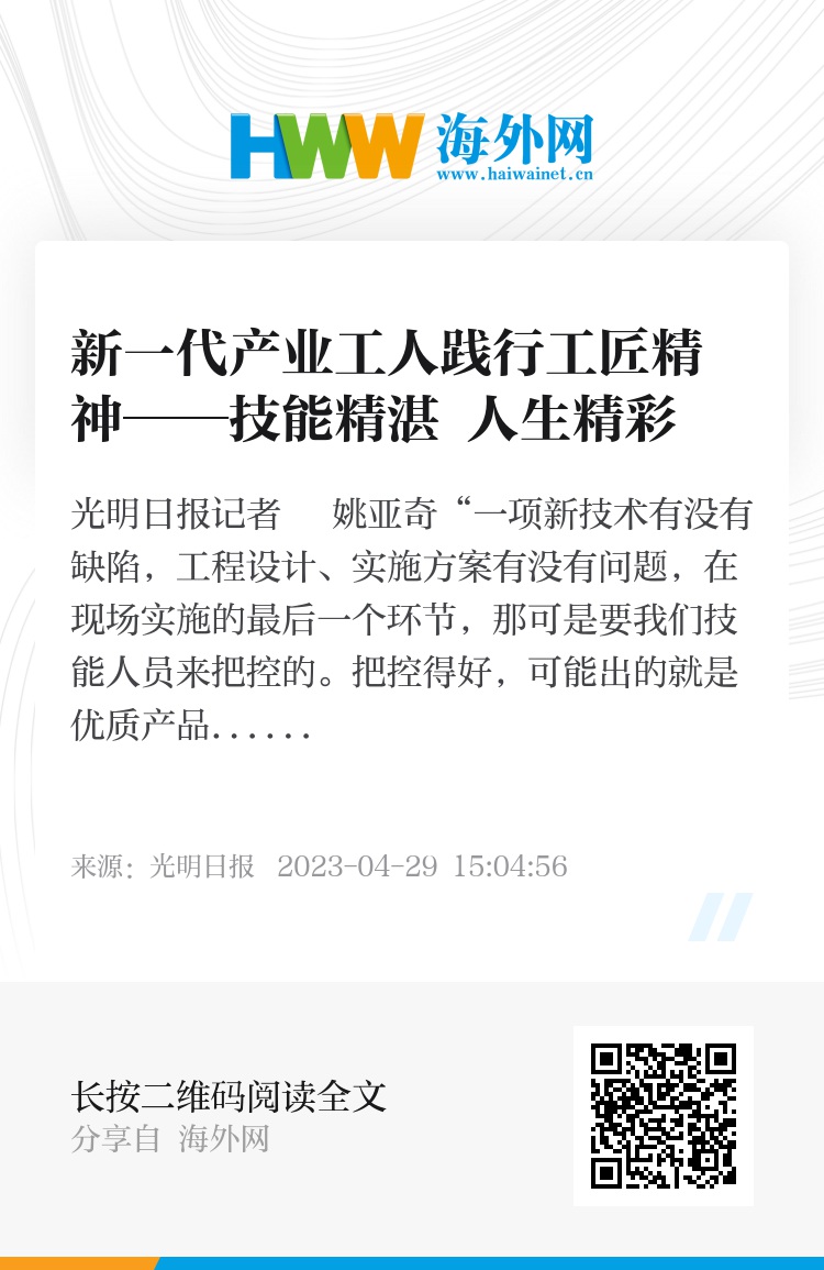 在“五一”国际劳动节即将到来之际,第十六届中华技能大奖获得者和全国技术能手代表等围绕“技能成才 技能报国”与中外记者见面交流,展现新一代产业工人风采,也为年轻人如何走进技能人才队伍提供了建议。