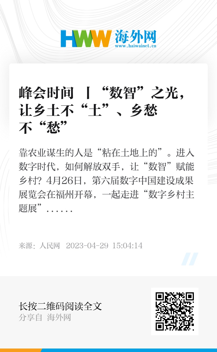靠农业谋生的人是“粘在土地上的”。进入数字时代,如何解放双手,让“数智”赋能乡村?4月26日,第六届数字中国建设成果展览会在福州开幕,一起走进“数字乡村主题展”感受“乡土中国”的“数智”魅力。