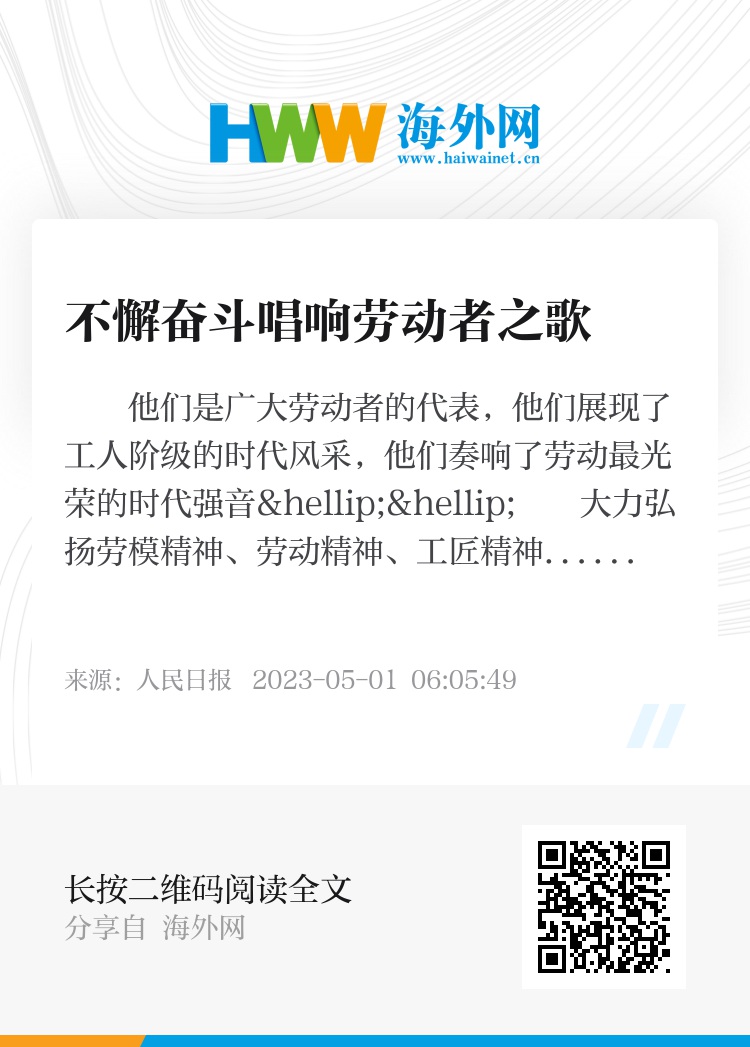 大力弘扬劳模精神、劳动精神、工匠精神,激励广大职工团结奋斗,积极投身强国建设、民族复兴新征程,在“五一”国际劳动节来临之际,中央宣传部、全国总工会向全社会公开发布2023年“最美职工”先进事迹。
