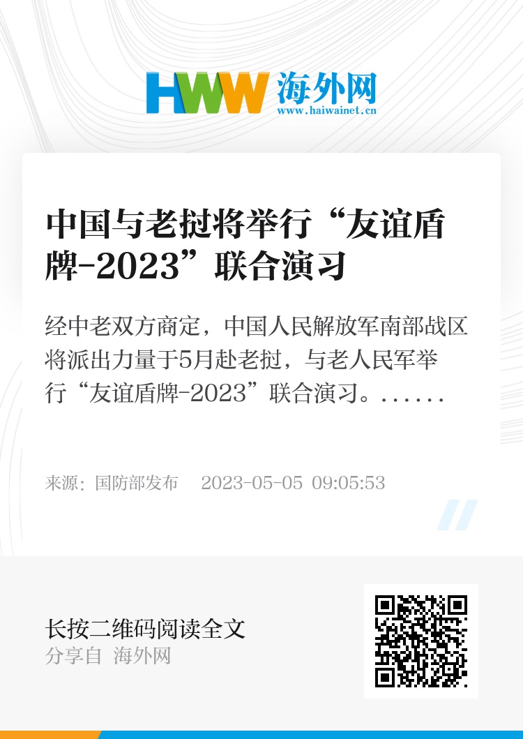 经中老双方商定,中国人民解放军南部战区将派出力量于5月赴老挝,与老人民军举行“友谊盾牌-2023”联合演习。