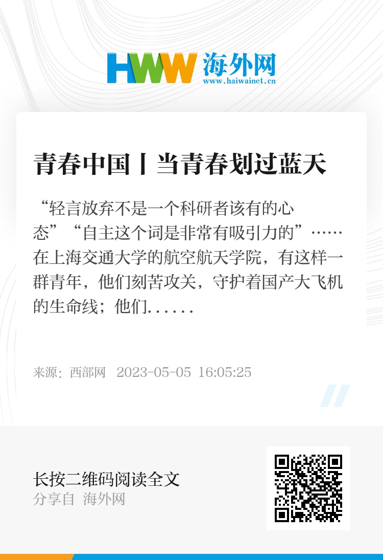 “轻言放弃不是一个科研者该有的心态”“自主这个词是非常有吸引力的”……在上海交通大学的航空航天学院,有这样一群青年,他们刻苦攻关,守护着国产大飞机的生命线;他们披荆斩棘,彰显着空天人的勇气和担当!新的征程,华章待续,他们正以青春力量赋能国之重器。