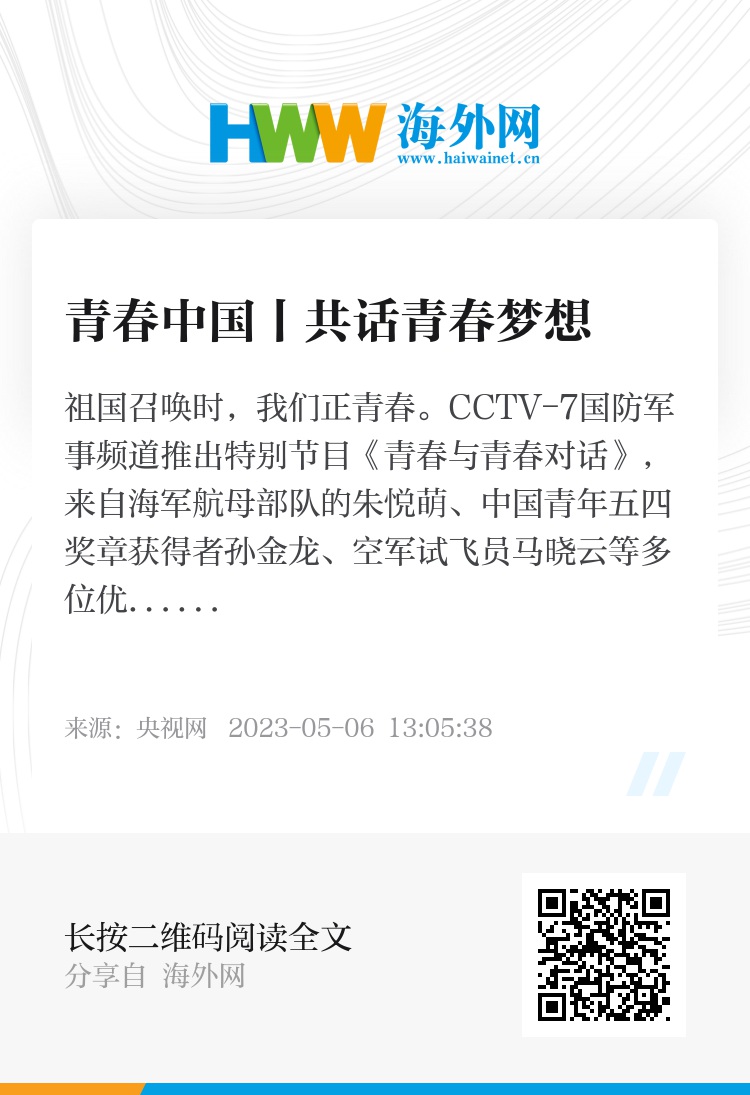 祖国召唤时,我们正青春。CCTV-7国防军事频道推出特别节目《青春与青春对话》,来自海军航母部队的朱悦萌、中国青年五四奖章获得者孙金龙、空军试飞员马晓云等多位优秀青年官兵代表走进中国人民大学,与莘莘学子共话强国强军使命,畅谈青春赛道上奋力逐梦的体会与感悟。