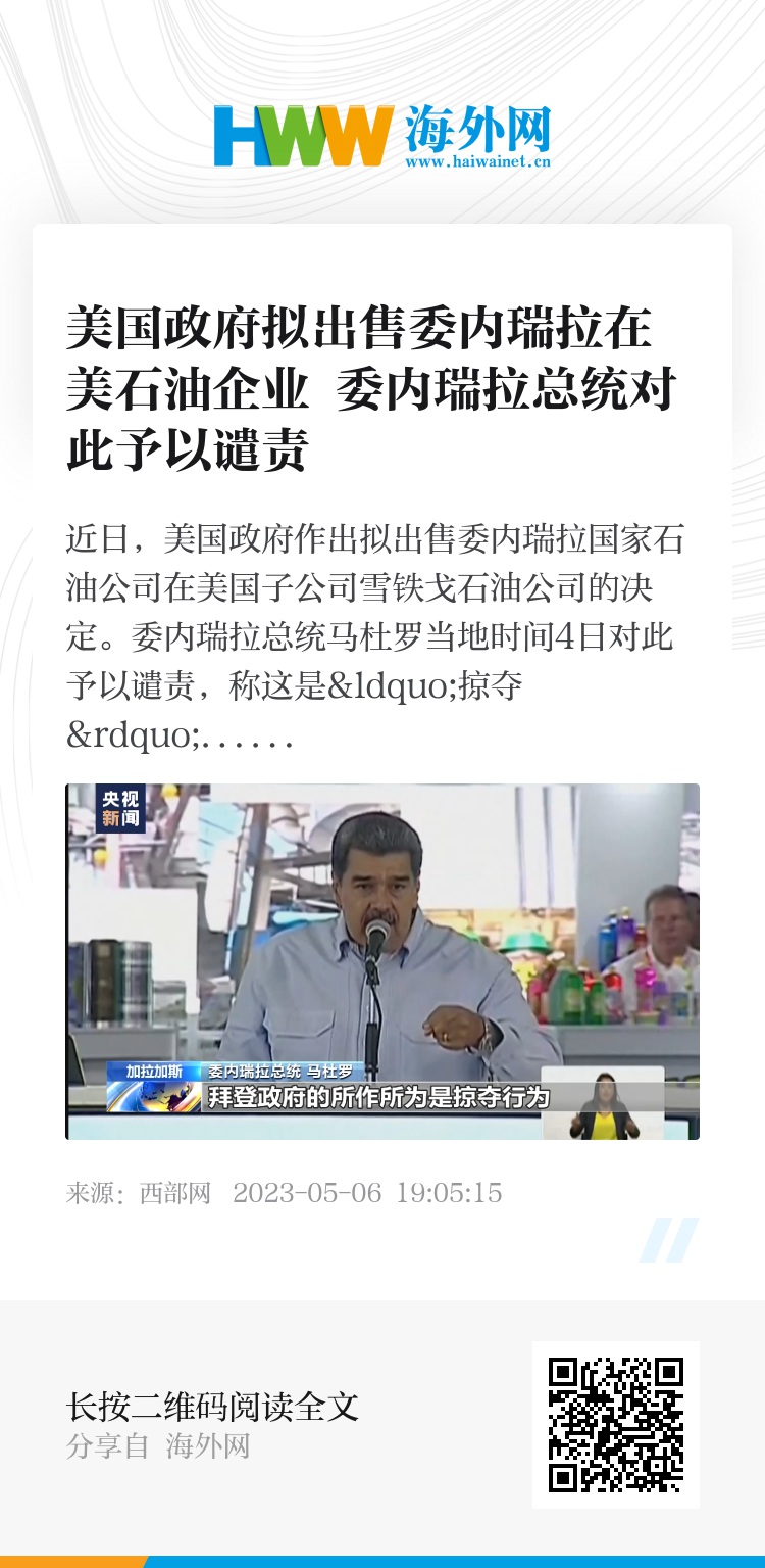 近日,美国政府作出拟出售委内瑞拉国家石油公司在美国子公司雪铁戈石油公司的决定。委内瑞拉总统马杜罗当地时间4日对此予以谴责,称这是“掠夺”行为,拒绝接受。