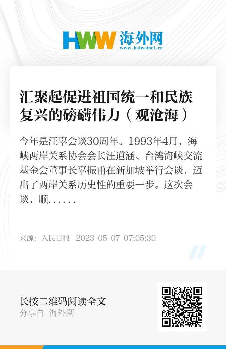 今年是汪辜会谈30周年。1993年4月,海峡两岸关系协会会长汪道涵、台湾海峡交流基金会董事长辜振甫在新加坡举行会谈,迈出了两岸关系历史性的重要一步。