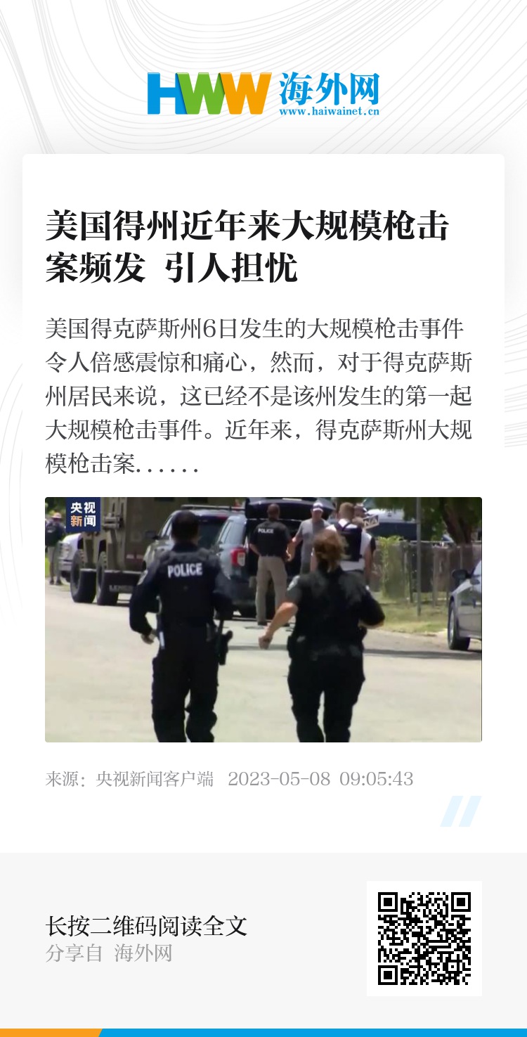 美国得克萨斯州6日发生的大规模枪击事件令人倍感震惊和痛心,然而,对于得克萨斯州居民来说,这已经不是该州发生的第一起大规模枪击事件。近年来,得克萨斯州大规模枪击案频发,引起当地以及全美各界广泛担忧。